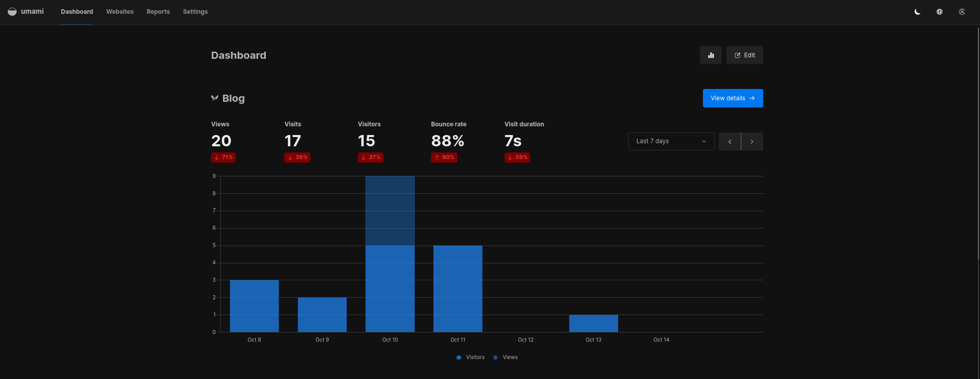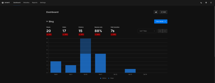 A great alternative to Google Analytics, this tool has a notable advantage: it isn’t blocked by privacy tools that filter trackers. Umami can track visitors using various AdBlock-like extensions, including Ghostery, as well as users of the Brave Browser. Additionally, it allows you to share your website statistics. Here, you can take a look at this blog’s humble stats.