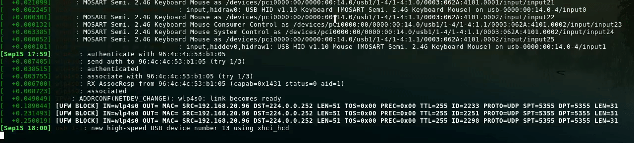 Checking kernel messages in real-time and connecting the drive
