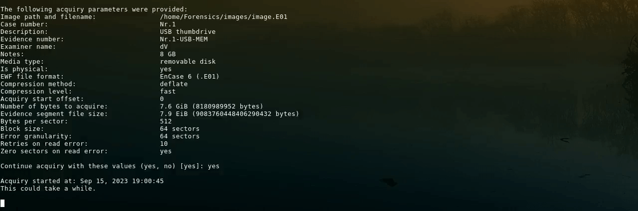 ewfacquire /dev/sda