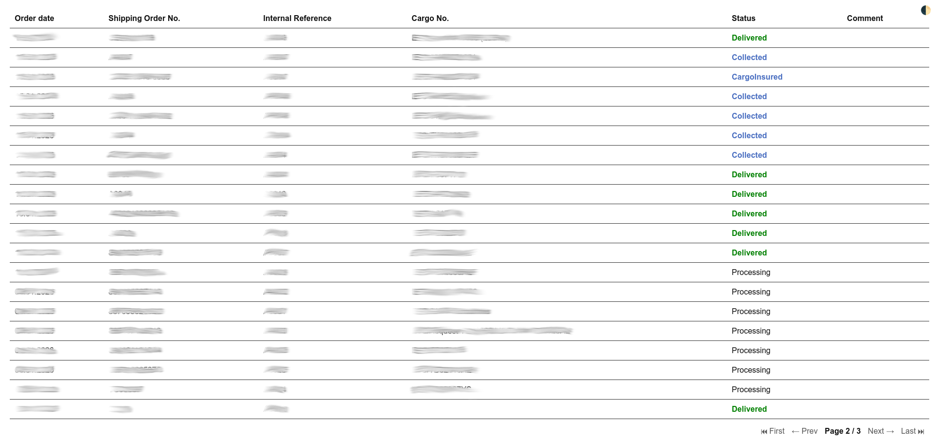 Visi loģistikas pasūtījumi tiek reģistrēti Pasūtījumu modulī, galvenajā skatā ir septiņas redzamās kolonnas, klikšķinot uz podziņas, kas atrodas blakus “Bulk Action” varam mainīt kolonnu kārtību, lai mainītu redzamās kolonnas. Varam kārtot informāciju pēc jeburas kolonnas, varam iespējot funkciju, ka varam rediģēt ierakstus uzreiz, tos neatverot, varam piespiest podziņu Filters un filtrēt informāciju pēc jebkuriem parametriem, kurus esam iestatījuši. Katrs pasūtījums ir saistīts ar konkrētu klientu un kontaktu, pasūtījumiem var tikt pievienoti dokumenti, epasti, piezīmes un uzdevumi.