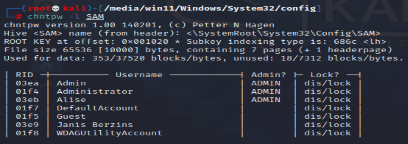 chntpw -l SAM