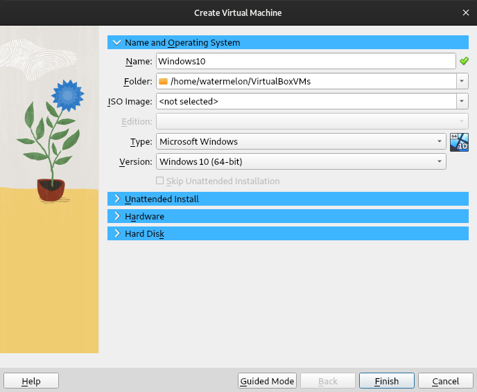 - Open VirtualBox, click the button “New” and create a new virtual machine: